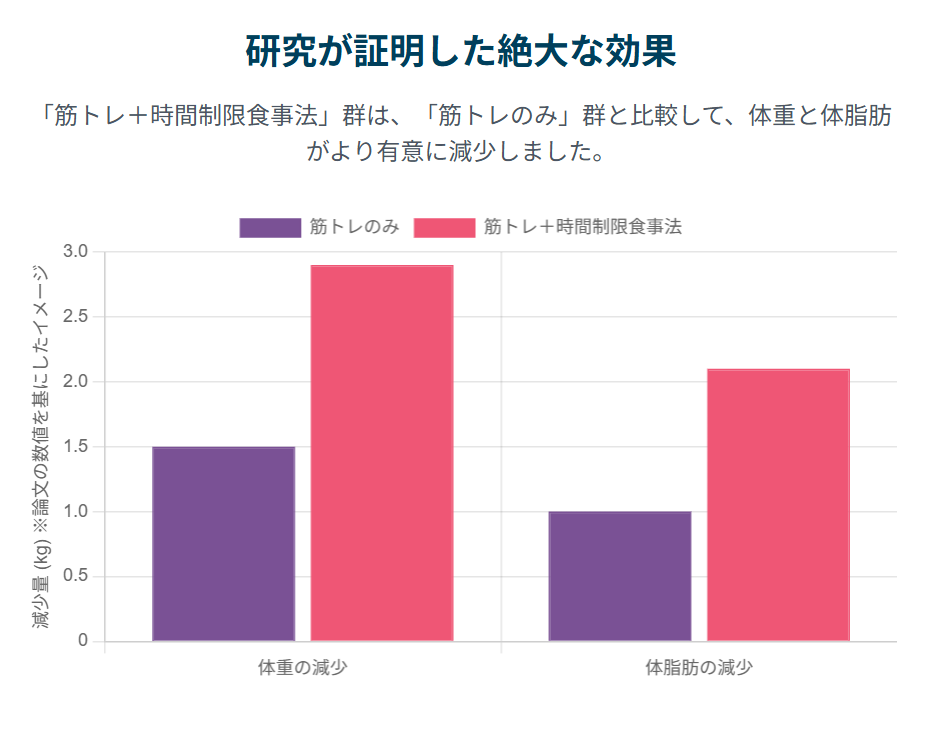 - どのような方法で検証したのか?: 複数の信頼性の高い研究結果を統合・分析する「メタアナリシス」という手法で、「筋トレ+通常の食事」と「筋トレ+時間制限食事法」の効果を比較した。